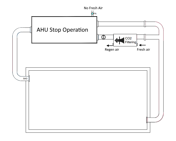 To install it in front of the AHU, CO2 is captured and fresh air intake can be stopped or reduced.